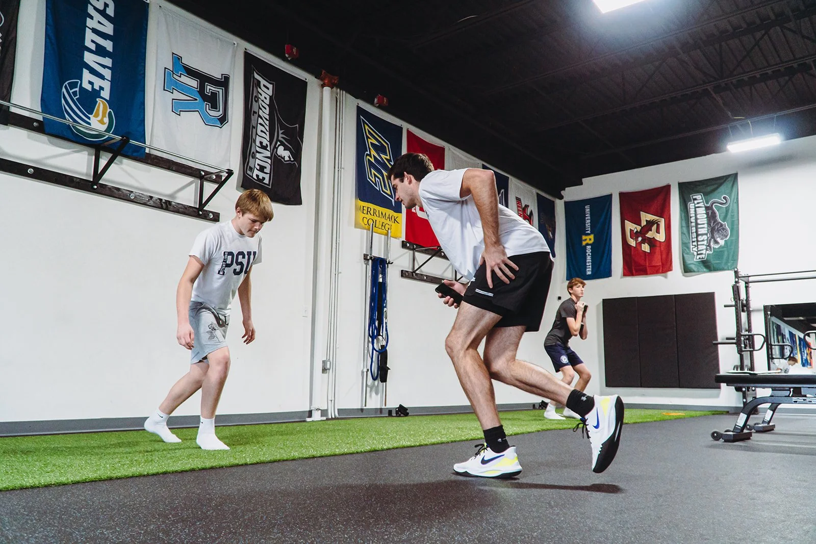 Our facility is a 3,500 sq. feet space, giving us 100ft of a straight-away so our members can get into a full sprint.